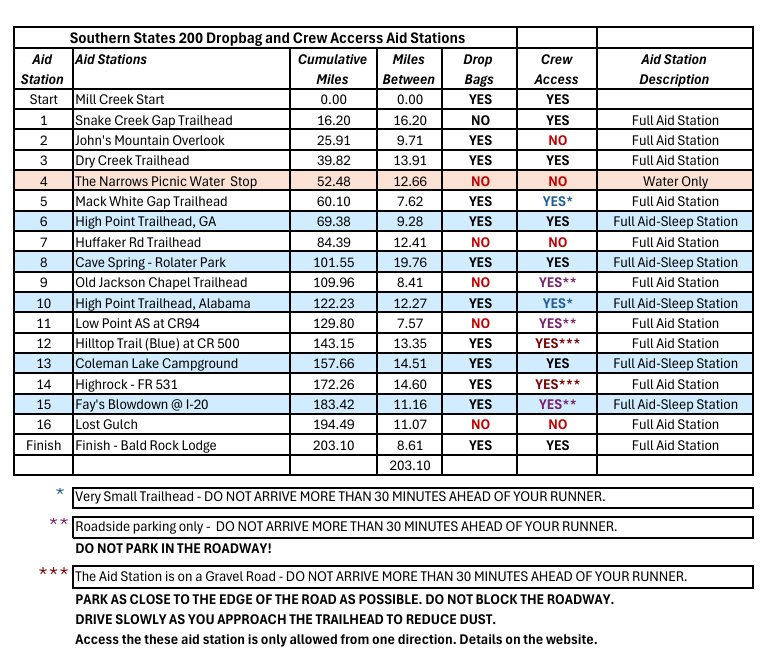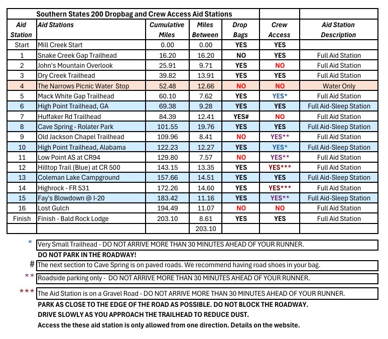 Dropbag Aid Stations and Crew Accessible Aid Stations