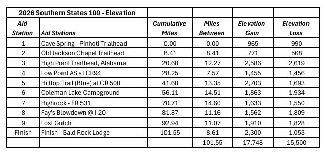 The Southern States 100 & 200 takes place on National Forest Lands. The run will cross through the Chattahoochee and Talladega National Forests.